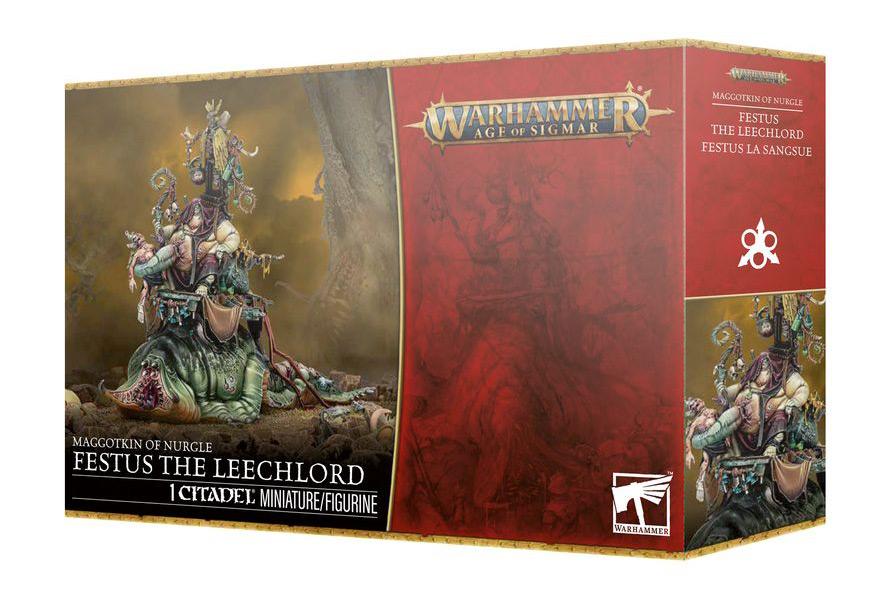 This multipart plastic kit builds Festus the Leechlord, a mighty Daemon Prince for your Maggotkin of Nurgle armies in games of Warhammer Age of Sigmar. Sitting atop his daemonic mount, Gathoblyt, he is ready to test out his latest concoctions on the battlefields of the Mortal Realms at the head of your forces. Few foes, no matter how hearty, can withstand the attentions of this nomadic 'doctor' as he reaches out with his gnarled plague staff.