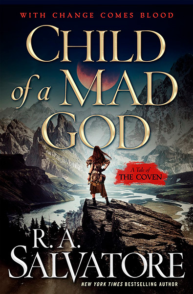 En helt ny serie påbörjar R A Salvatore (mest känd för sina Forgotten Realms-romaner om svartalven Drizzt Do’Urden) med Child of a Mad God. Där möter vi Aoleyn, en tjej som förlorar sina föräldrar och kämpar med tillvaron i sin vilda barbarstam. Hon drömmer sig bort och hoppas att hennes magiska begåvning ska vara en biljett ner från de ogästvänliga bergen.